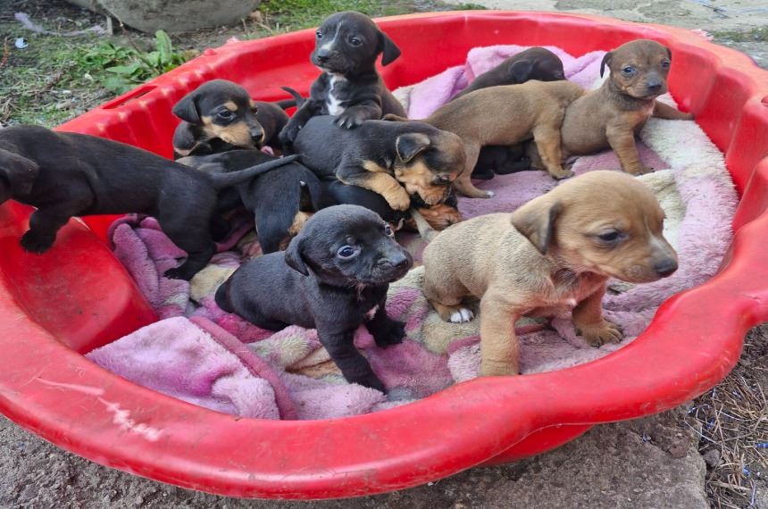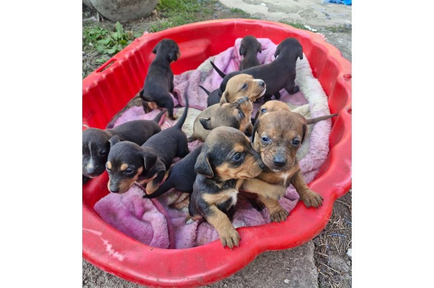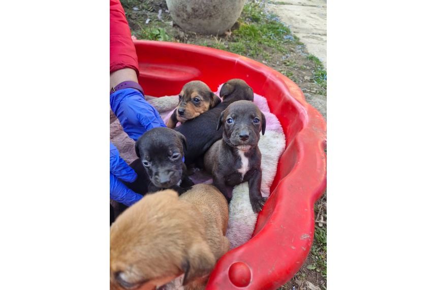 TÜNDÉRI BABA KUTYÁKNAK KERESÜNK SZERETŐ CSALÁDOT !‼️A 11 kicsiből még 8 pindurnak nincs gazdijelöltje, megoldása. 2026.02.04-i születésűek, így április elején költözhetnek új otthonukba vagy új helyükre. Csóváló farkincák, nyújtózó tappancsok keresik az emberi közelséget, bár még a mama a legfontosabb. A mama egy stafford kutyus, az apa ismeretlen, de valószínű tacskó. Így várhatóan közepes méretű kutyusok lesznek. Ha felkészültél egy kölyök kutyus befogadására otthonodba és szìvedbe is, akkor bátran jelentkezz! A kicsiknek megkezdjük oltási programját, így 2 oltással tudnak majd költözni. A kicsik Jász-Nagykun-Szolnok megyében, Kunhegyesen találhatóak.‼️